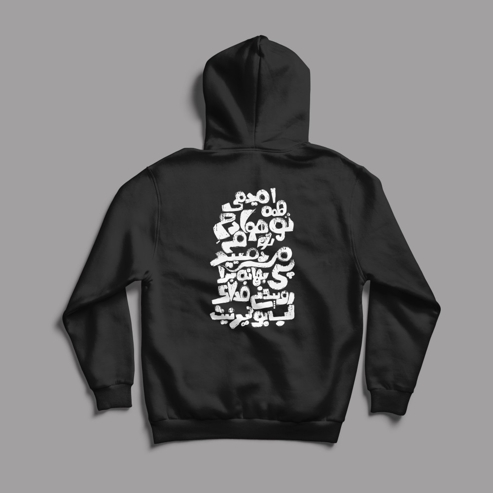 در قسمت جلوی هودی، عبارتی با مضمون صدای قلب و عشق طراحی شده و در پشت آن متنی عمیق و شاعرانه نقش بسته که از دلبستگی، امید و نفس‌گرفتن با حضور عشق می‌گوید.